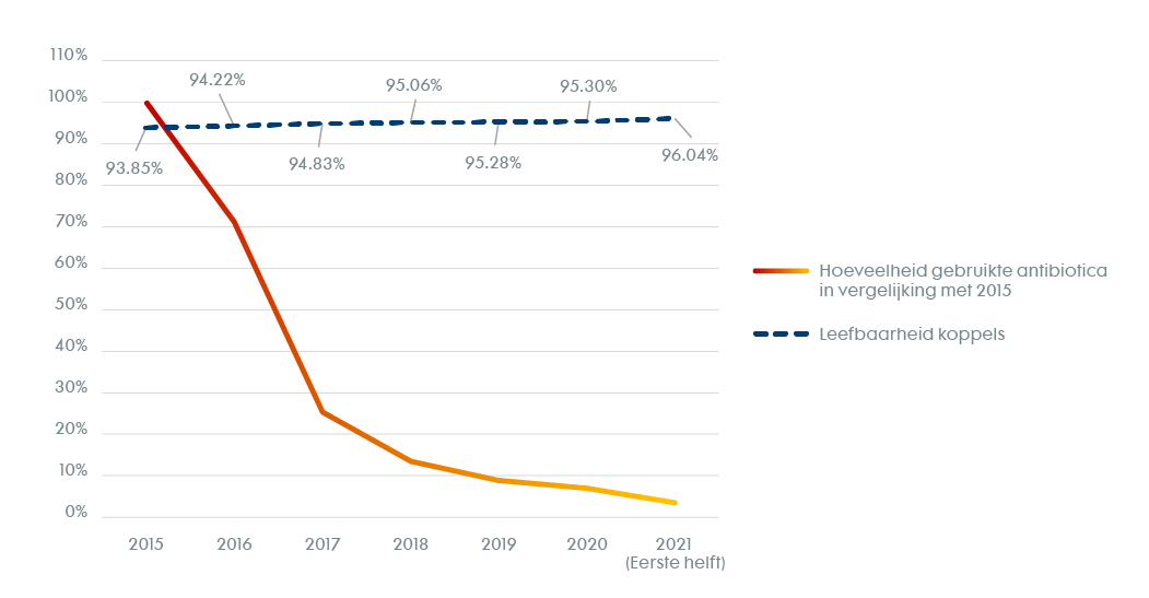 Een 'stap-voor-stap-strategie' zorgt bovendien voor bewustzijn en biedt alternatieve oplossingen voor risicofactoren die je voorheen misschien met antibiotica aanpakte. Door gebruik te maken van nieuwe inzichten en kleine, geleidelijke stappen te zetten om risicofactoren aan te pakken, is het effect op de prestaties vaak groter dan bij de vroegere productiewijze met behulp van antibiotica.
